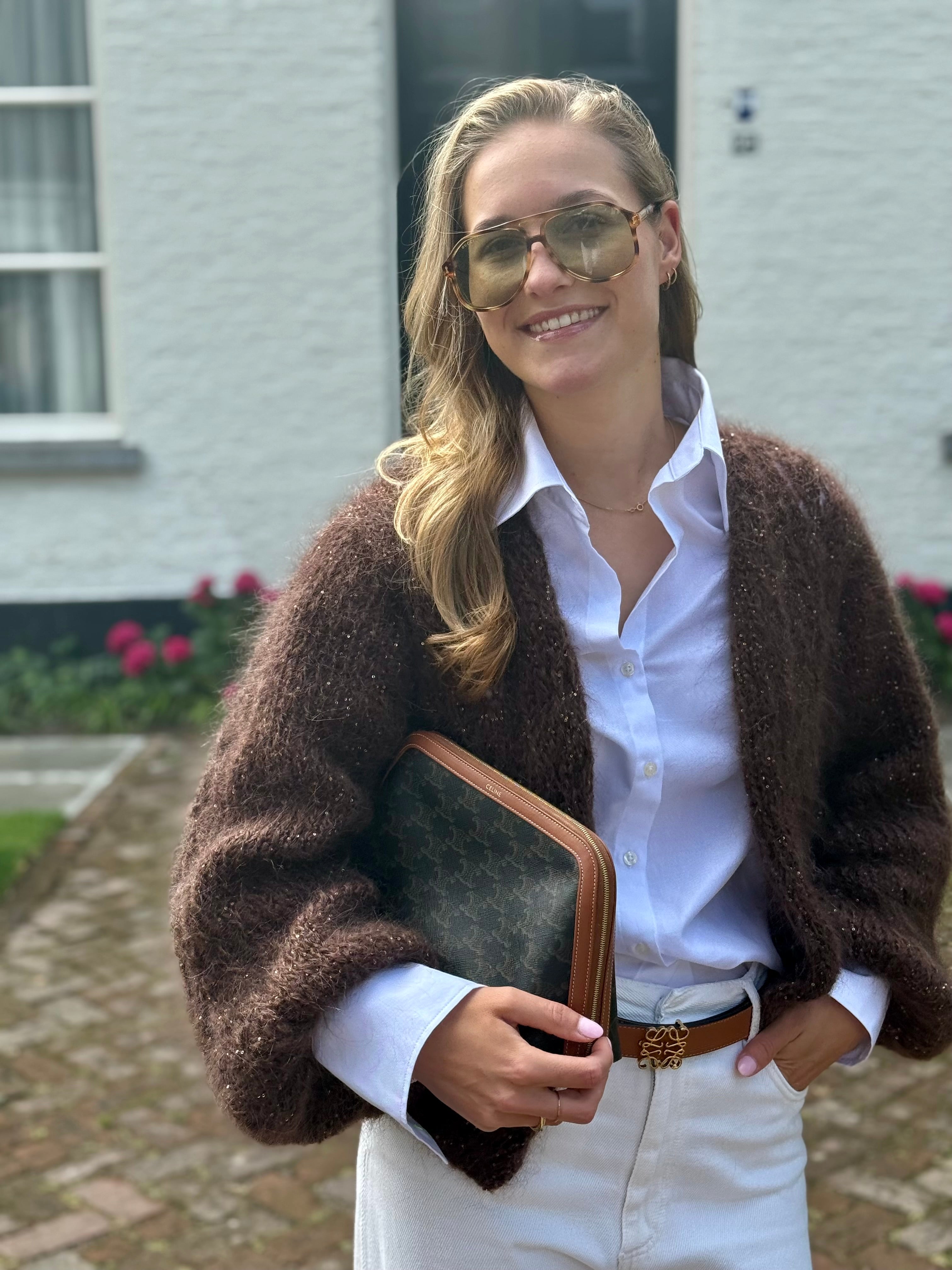 Zoek je een bijzonder vest dat warmte, stijl en vakmanschap samenbrengt? De Lilly Knit is onderdeel van onze Fall/Winter 2025 collectie en is ontworpen om jou te laten schitteren – subtiel en smaakvol. De zachte mohair blend voelt heerlijk aan op de huid en draagt licht, terwijl de paillet het vest tot een echte eyecatcher maakt.